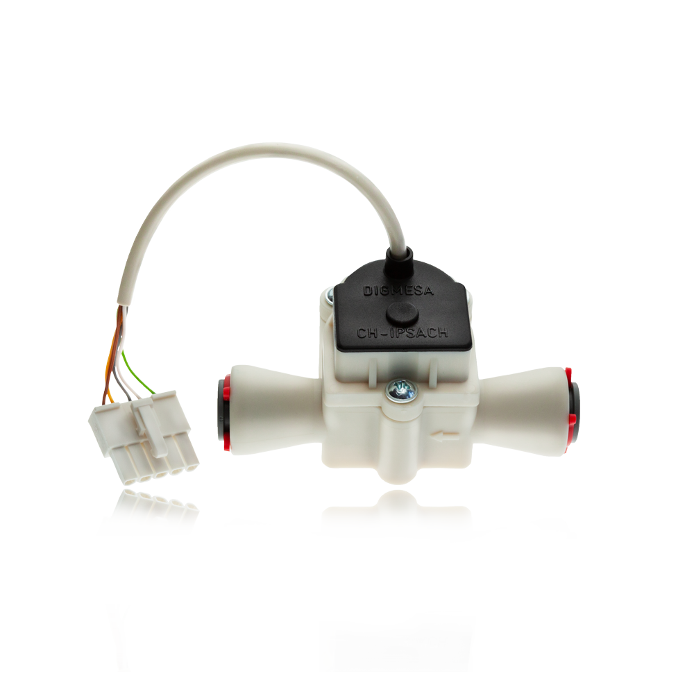 The CombiSensor has been designed for all applications where Flow, Temperature and Conductivity must be measured, and in a very compact form. The device is therefore adequate for the waterfilter industry (e.g. compact RO equipment). The CombiSensor analog comes with one pulse output for flow and two current outputs for conductivity and temperature.